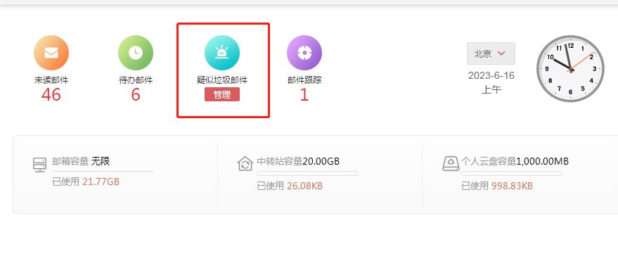 1. 新增加“疑似垃圾邮件”功能,功能入口如下: