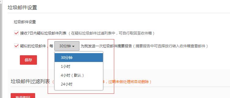 新功能提供设置疑似垃圾邮件摘要报告的接收频率,具体如下图:
